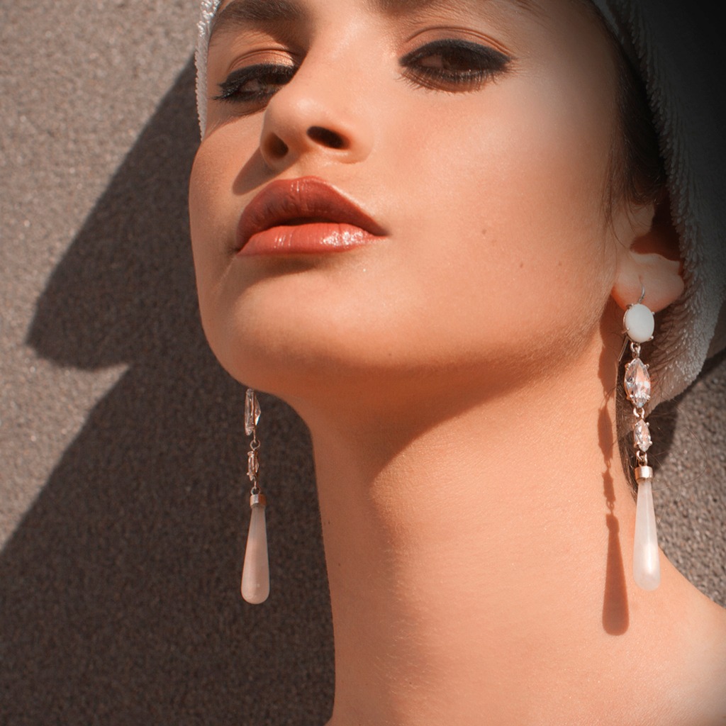 Aros de Plata 925 con gemas de Onix Blanco y cubics engarzados