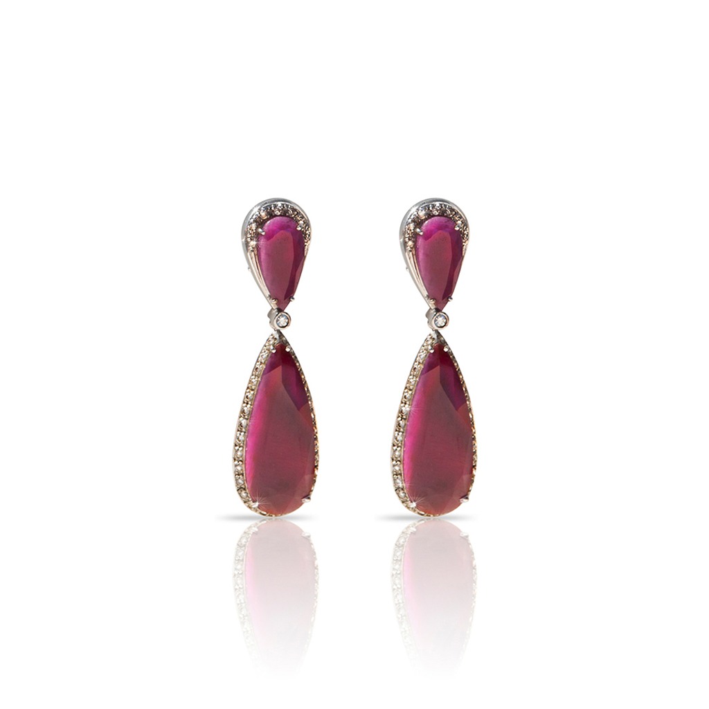 Aros de Oro Blanco 18 K (Quilates) con Rubíes y Brillantes