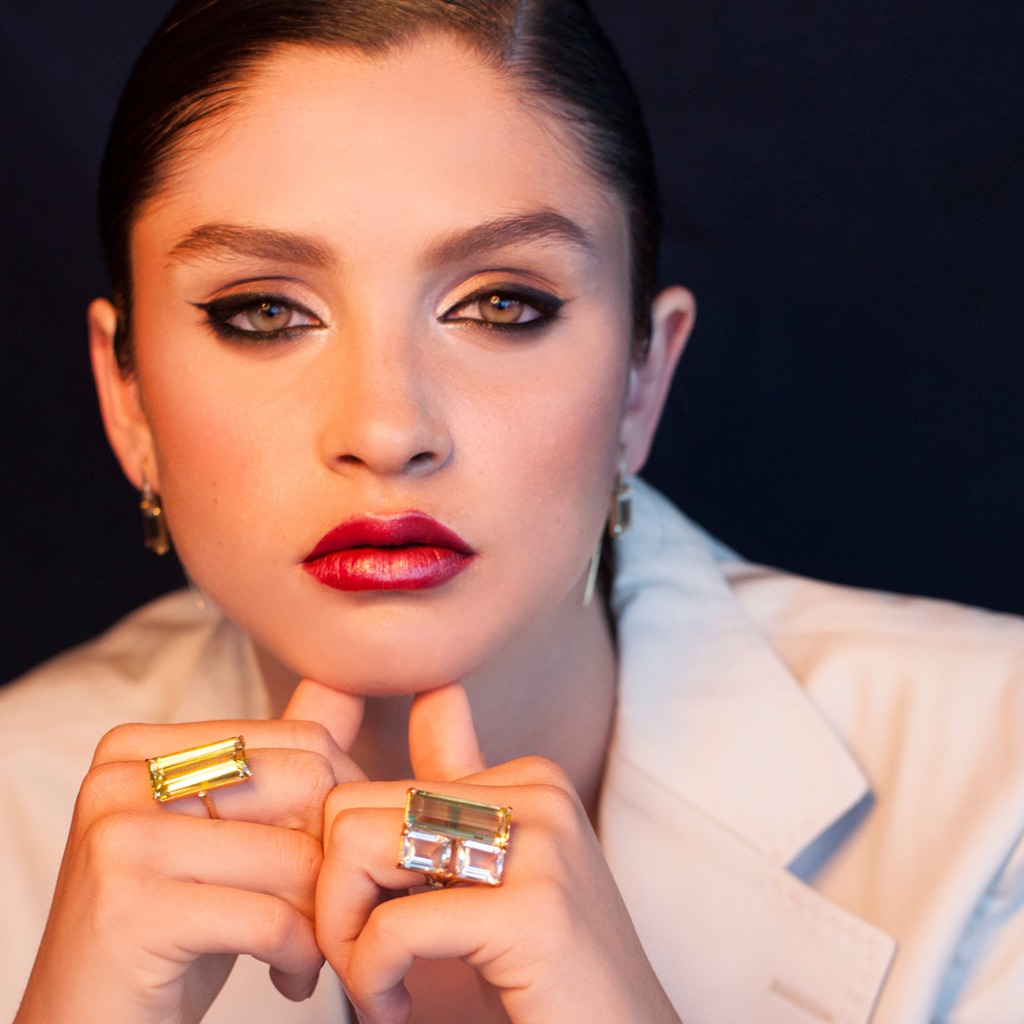 Anillo de Oro Amarillo 18 K (Quilates) con gema Green Gold rectangular