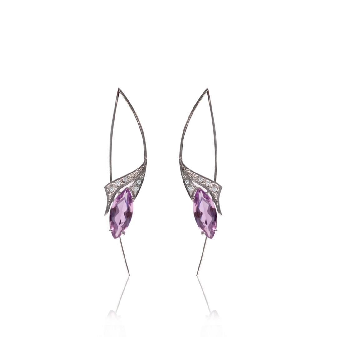 Aros de Oro Blanco 18 K (Quilates) con gema Ametista y Brillantes