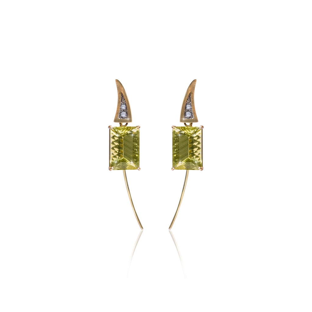 Aros de Oro Amarillo 18 K (Quilates) con gema Green Gold y Brillantes