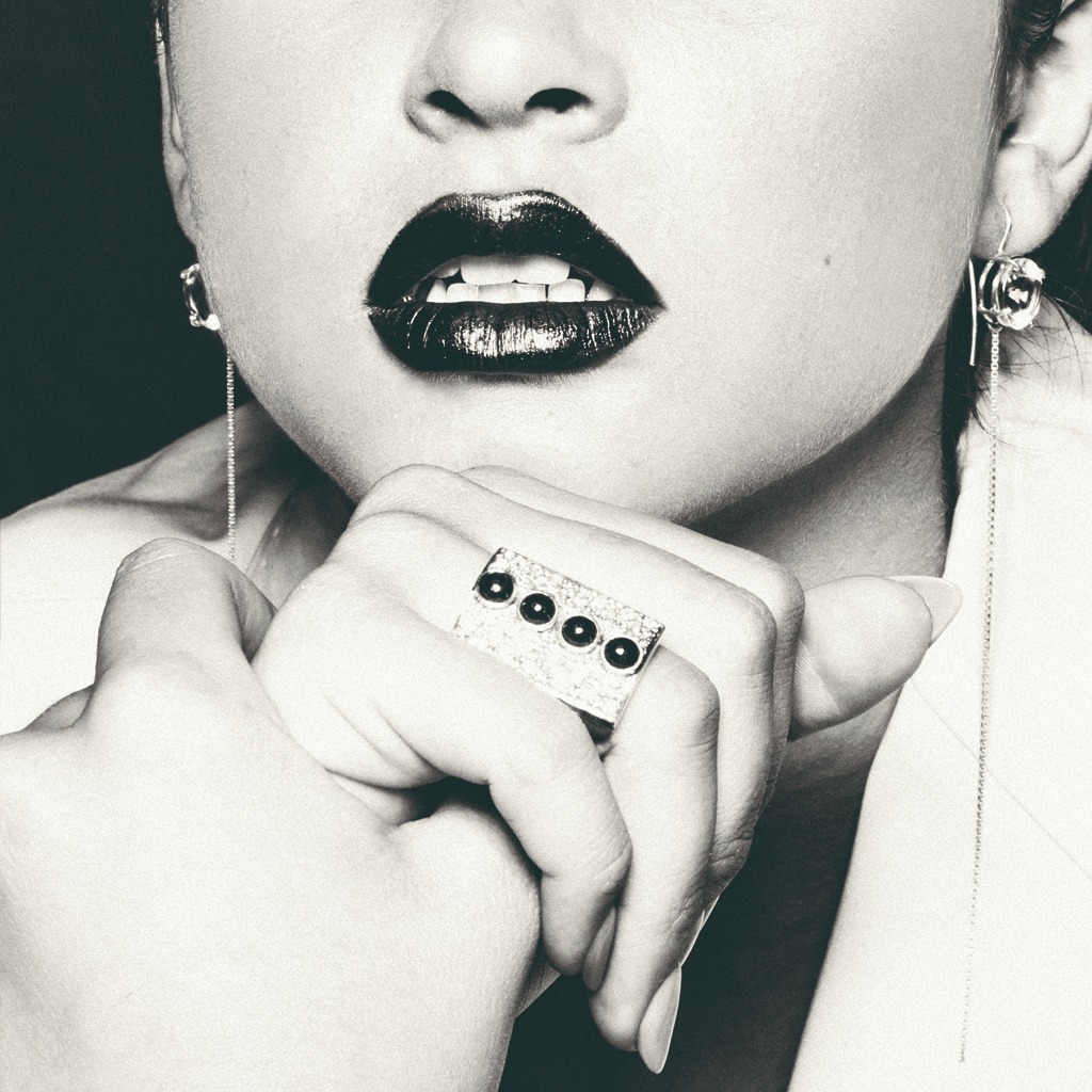 Anillo de Plata 925, con Granates forma bombe y cubics engarzados pavé