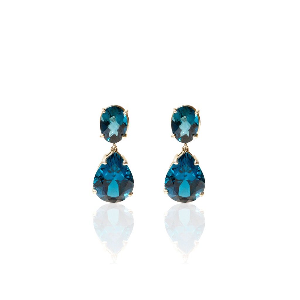 Aros de Oro Blanco 18 K (Quilates) con gemas Topacio London Blue